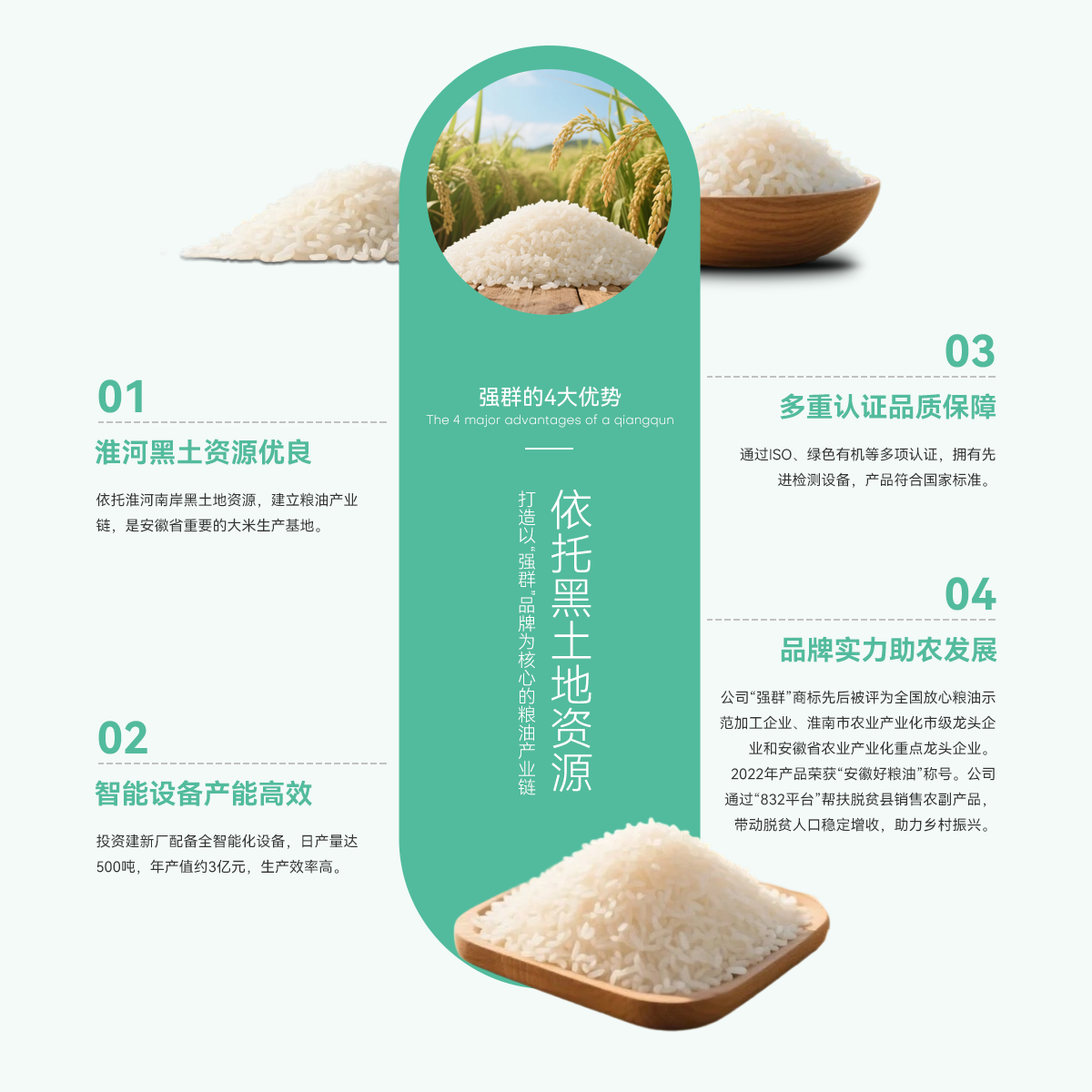 壽縣強(qiáng)群糧油貿(mào)易有限公司成立于2011年,座落在淮南市壽縣澗溝鎮(zhèn),是一家集種植、加工、收儲(chǔ)、銷售于一體、以生產(chǎn)中、高檔質(zhì)優(yōu)、特色類大米為主的綜合性企業(yè)。公司依托準(zhǔn)河南岸的黑土地資源,打造以“強(qiáng)群”品牌為核心的糧油產(chǎn)業(yè)鏈,是安徽省重要的大米生產(chǎn)基地。   為響應(yīng)市場(chǎng)增長需求,公司2021年啟動(dòng)二期擴(kuò)產(chǎn)工程,其中新生產(chǎn)廠區(qū)建設(shè)投入資金近億元,建設(shè)現(xiàn)代化新生產(chǎn)線,總占地面積約4000...
